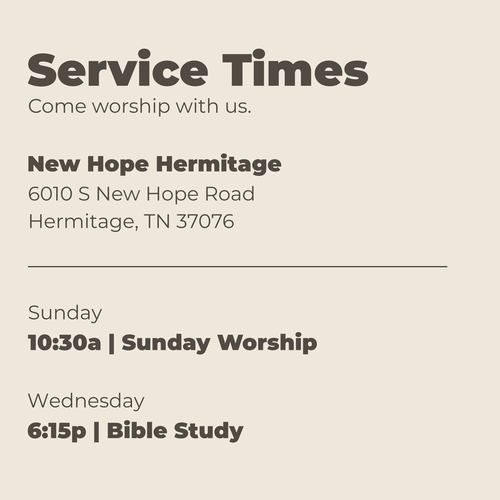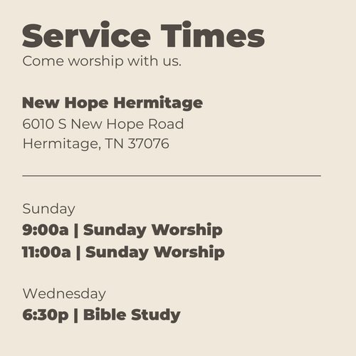 At New Hope Hermitage, we exist to help everyday people turn into everyday disciples — by coming to Jesus, becoming like Jesus, and being everything He intended them to be — so that together we can make Hermitage more like Heaven.